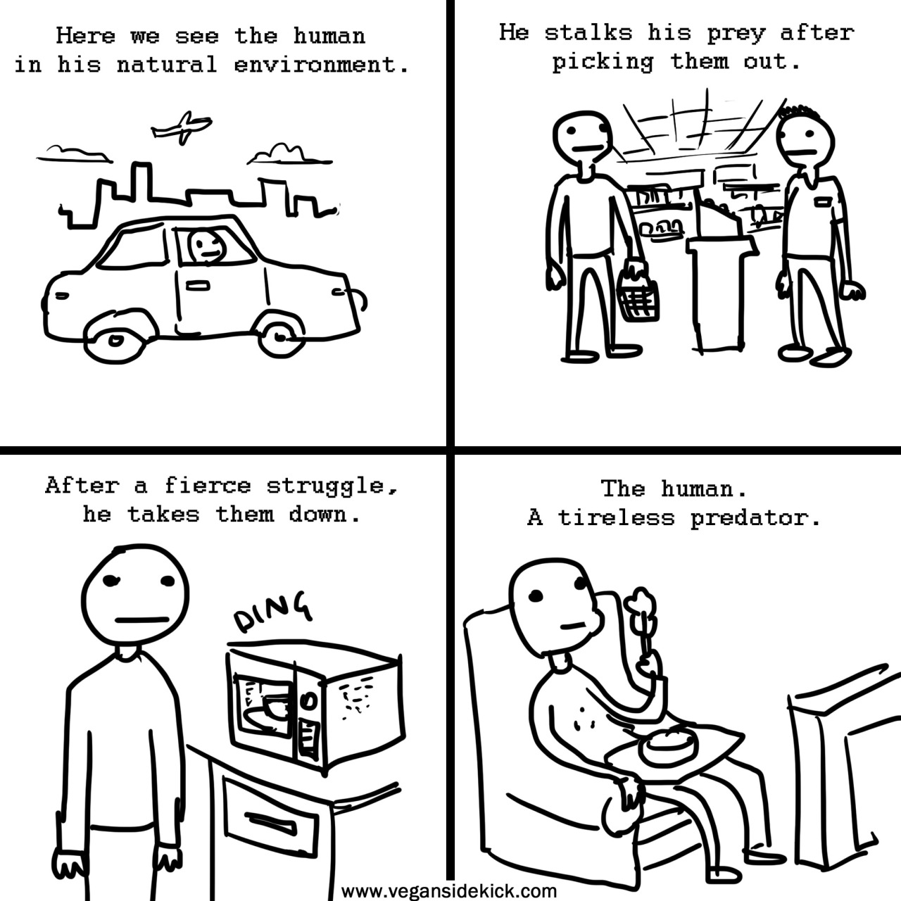 Second, we should consider the plight of "food animals", being raised in nearly universally abusive situations and being killed by humans with dubious justifications. The intrinsic value of these creature's lives are unaltered by their context, which (to my thinking) makes these killings an immoral act. However, I cannot prevent the machinations that are causing these deaths all on my own, so I'm seeking consensus from others regarding the morality of these actions, and am soliciting their cooperation to stop it. In effect, I am actively attempting to stop humans from killing animals immorally.