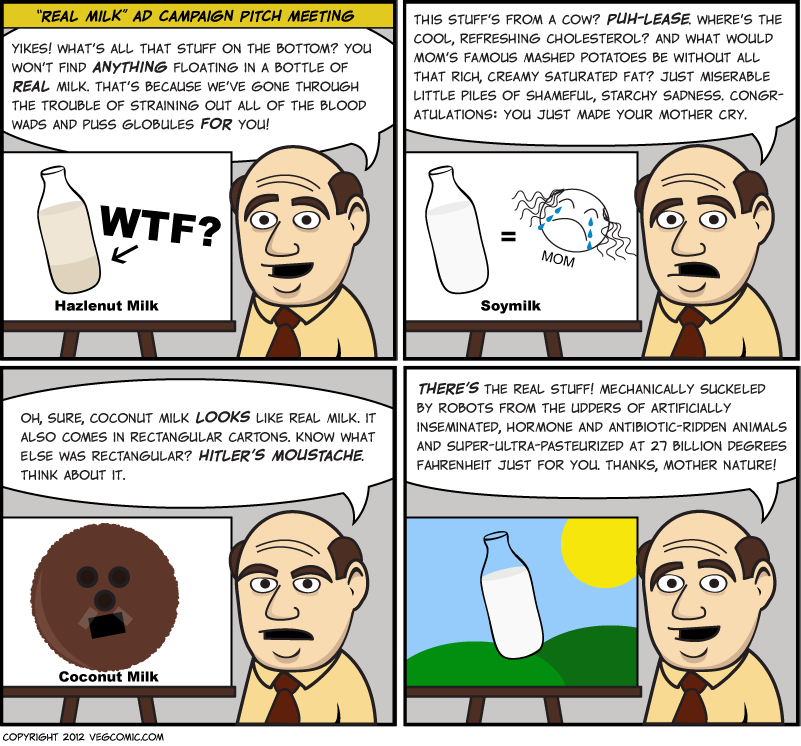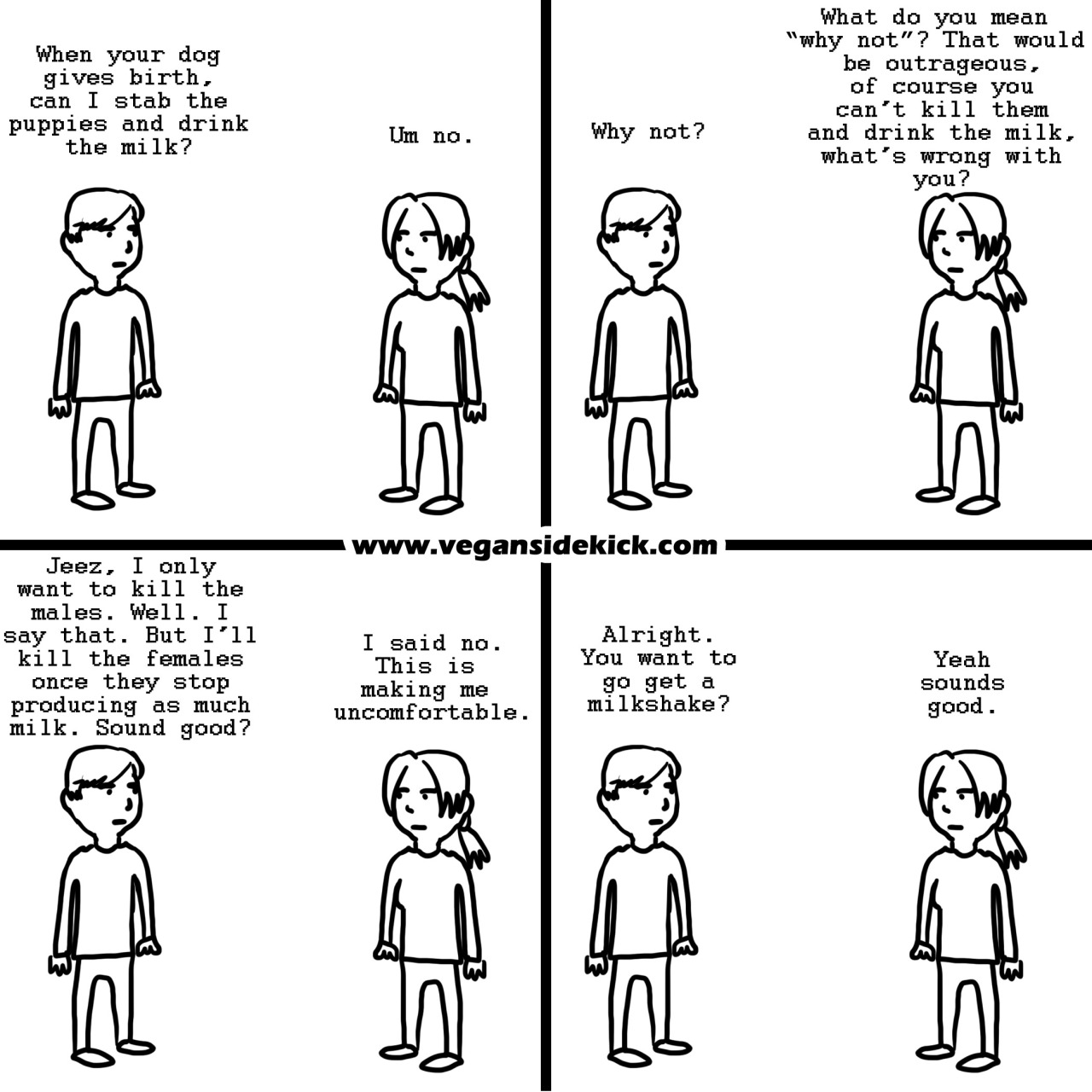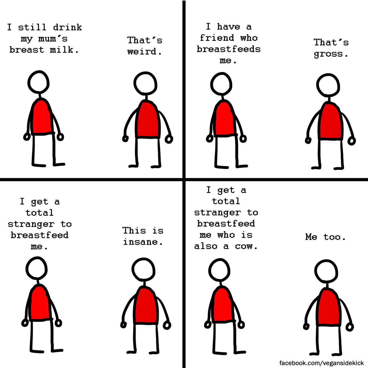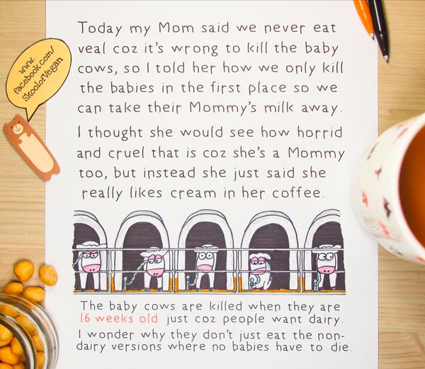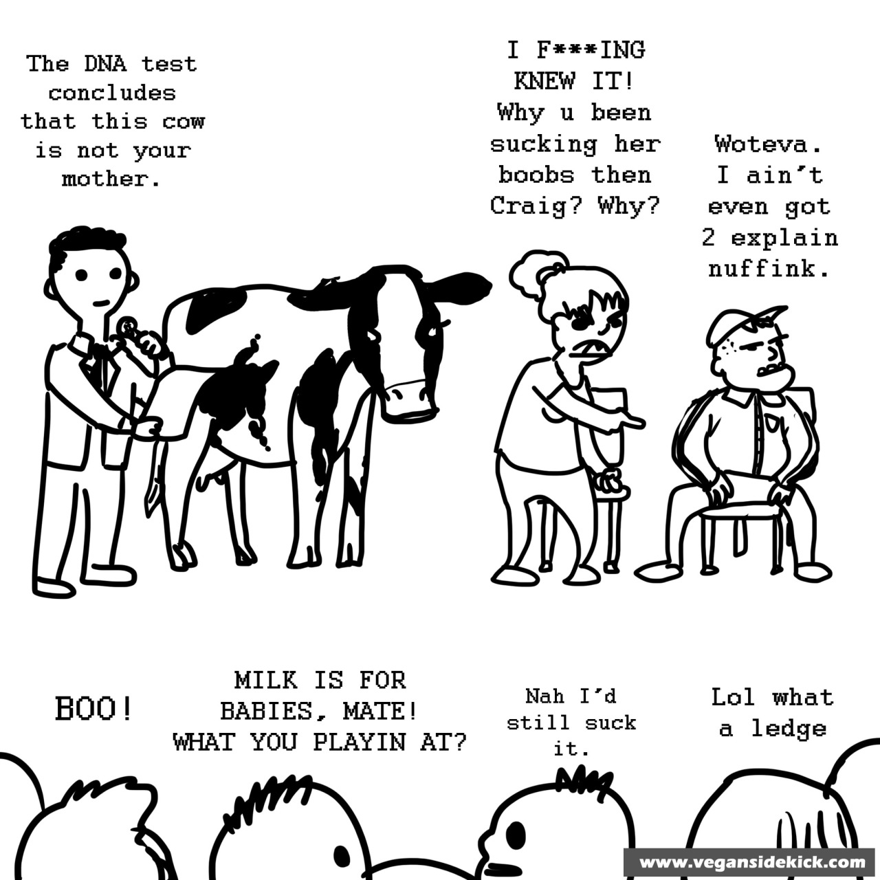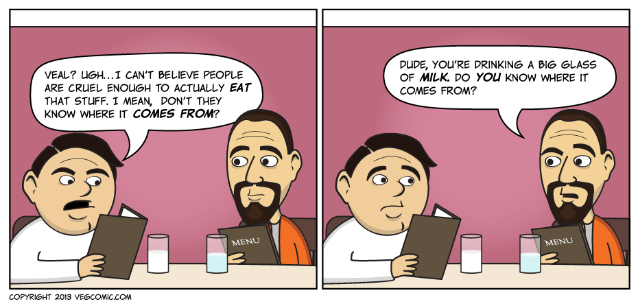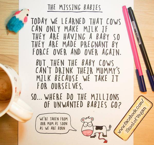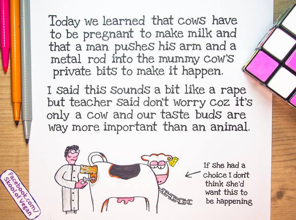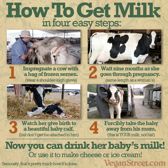 If you will bear with me a moment, let's consider the "trade" we're forcing on these beings, and I'll do so assuming the best possible environment for the life of a dairy cow (as the vast majority have a great deal more suffering involved then what I'm about to cover):