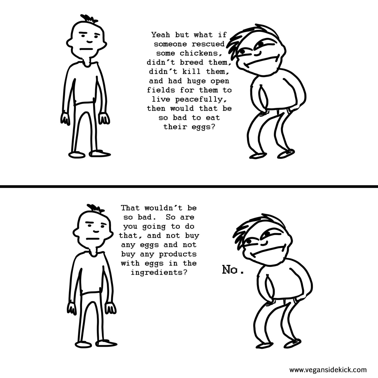 Withal, +Chicken Little, it's hard for me to see how eggs can be thought of as anything but cruel, you know?