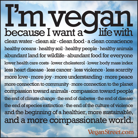 Now that I'm vegan, I feel like I have a purpose in life - and that purpose is to do the very best I can to make the world a better place for whoever's left behind when I'm gone. People, animals, the environment - veganism does good for everyone and everything. Through my blog, I'm spreading the word about our movement so more and more people can get on board.