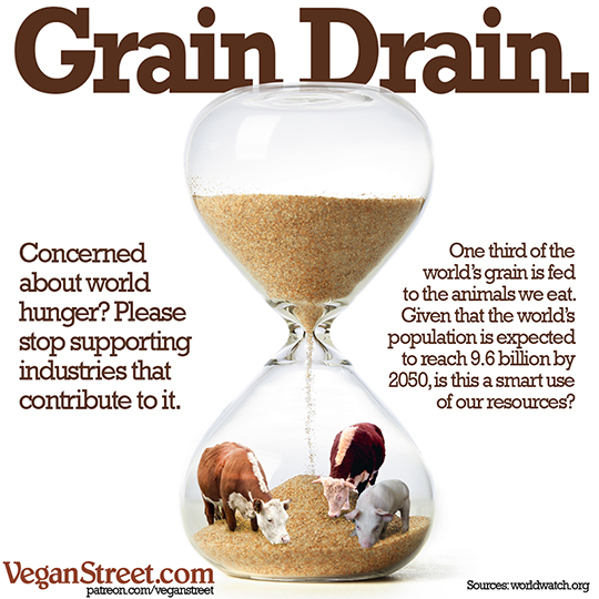 Food scarcity is an argument for veganism, not against it. As the world’s population grows and more people are able to afford meat, less food is available overall. This is because we filter protein and energy-rich crops like soy and grain through animals at a substantial loss before eating them. Depending on the numbers you want to trust and the type of animal it comes from, each pound of meat requires four to thirteen pounds of feed to produce. By switching to a plant-based diet, the farms that presently grow that feed are able to grow food for people instead.