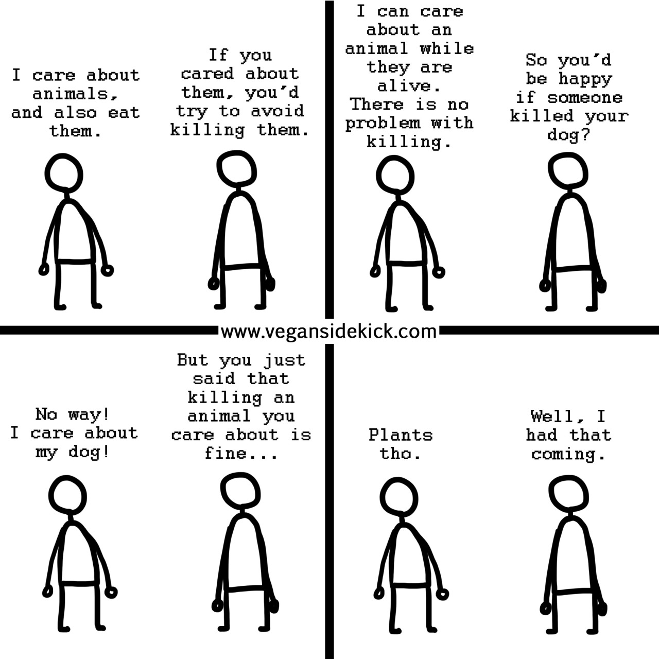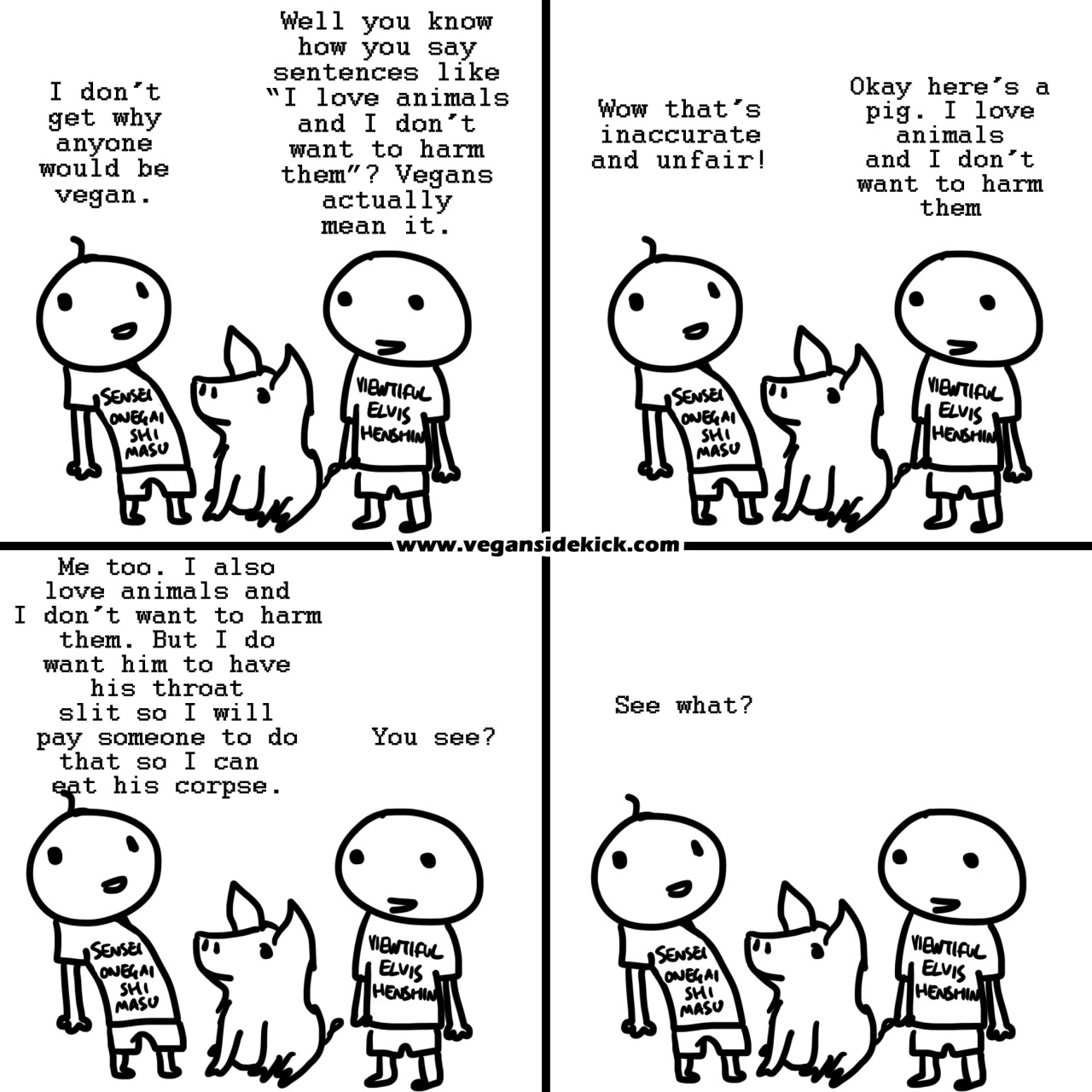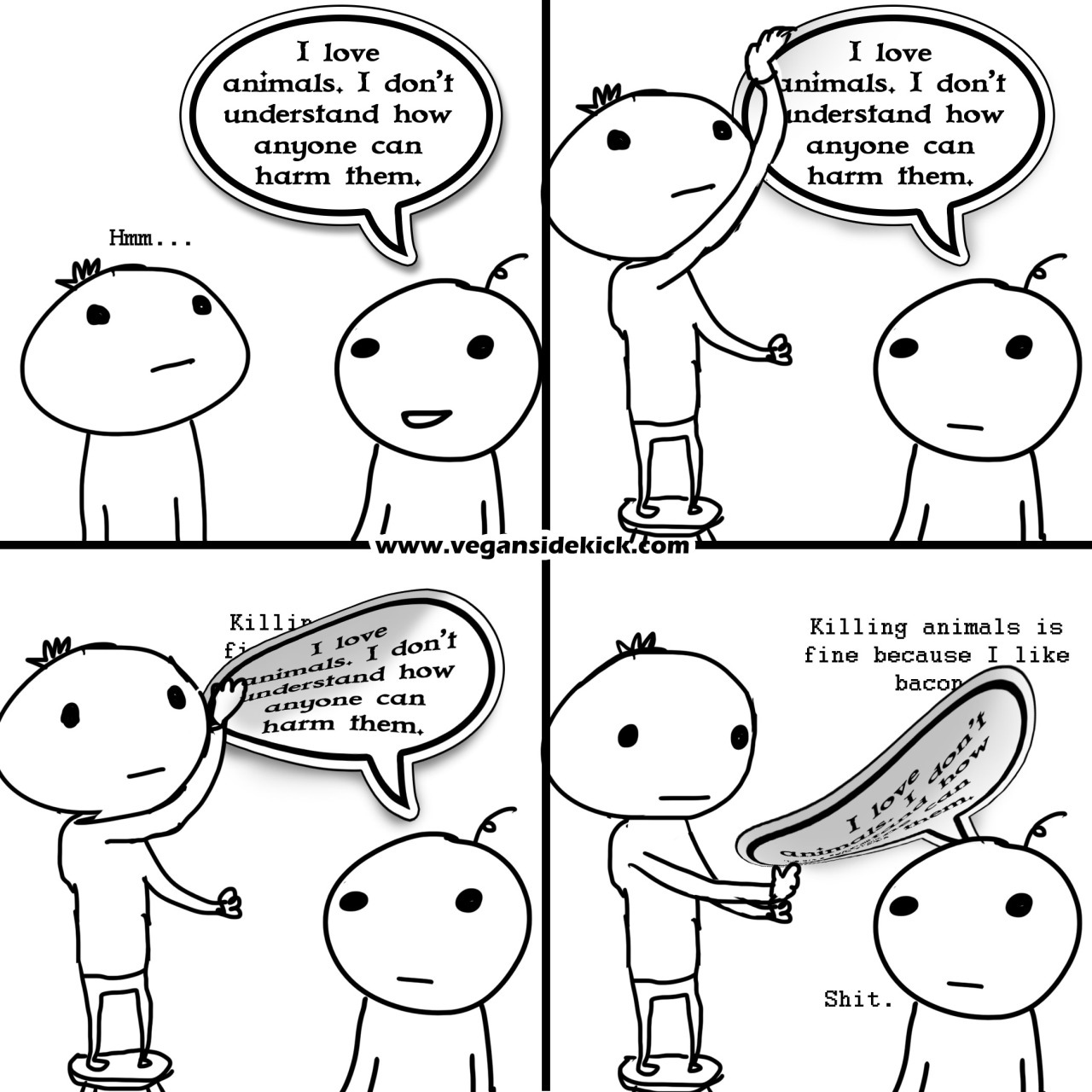 Just as it is not possible to oppress people and still claim to be humanists, we cannot harm animals and still claim to be animal lovers. Love is not expressed for animals by violating and killing them, nor is it expressed by paying someone else to do so on our behalf. At worst, such behavior is an act of hate and at best an act of apathy for the plight of the victims. Love requires that we support and protect those we love, and in the case of animals, it requires that we do not commodify their lives. Rather, we must treat them with dignity in ways that align with their needs and wishes rather than our own selfish desires. Therefore, if we do love animals, then going and staying vegan does a great deal to express that love.