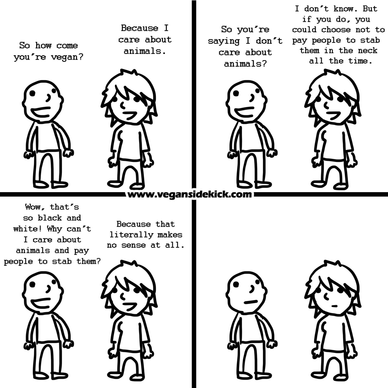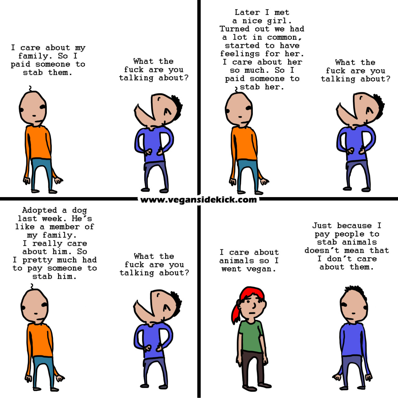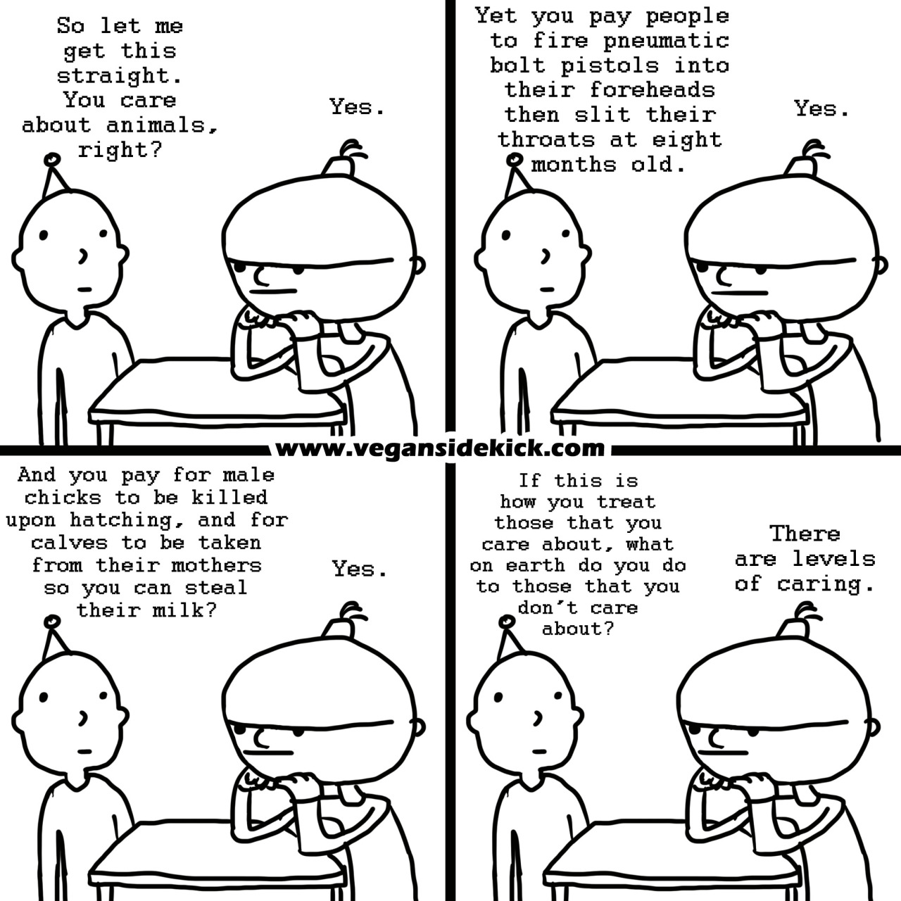 Just as it is not possible to oppress people and still claim to be humanists, we cannot harm animals and still claim to be animal lovers. Love is not expressed for animals by violating and killing them, nor is it expressed by paying someone else to do so on our behalf. At worst, such behavior is an act of hate and at best an act of apathy for the plight of the victims. Love requires that we support and protect those we love, and in the case of animals, it requires that we do not commodify their lives. Rather, we must treat them with dignity in ways that align with their needs and wishes rather than our own selfish desires. Therefore, if we do love animals, then going and staying vegan does a great deal to express that love.