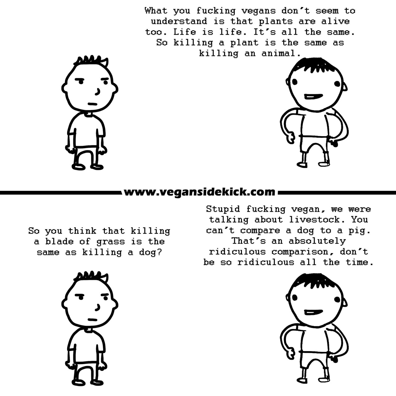 Vegan vegan plants plants… Yeah yeah… But, playing Devil’s advocate, why should I value animals more than plants? Because, eating plants is not the same as eating animals, and here’s why: