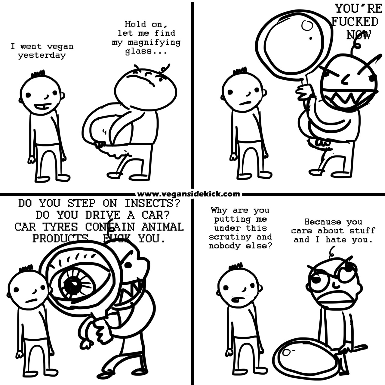 The term 'vegan' is defined as "a philosophy and way of living which seeks to exclude — as far as is possible and practicable — all forms of exploitation of, and cruelty to, animals for food, clothing or any other purpose; and by extension, promotes the development and use of animal-free alternatives for the benefit of humans, animals and the environment. In dietary terms it denotes the practice of dispensing with all products derived wholly or partly from animals." The meaning of the word 'vegan' excludes the possibility of perfection, and vegans themselves understand they cannot hold their philosophical position absolutely. However, this understanding in no way prevents them from making significant, positive changes in the world by choosing not to harm other sentient beings when and where they can. Clearly, anyone who makes this same decision is 100% perfect in their veganism.